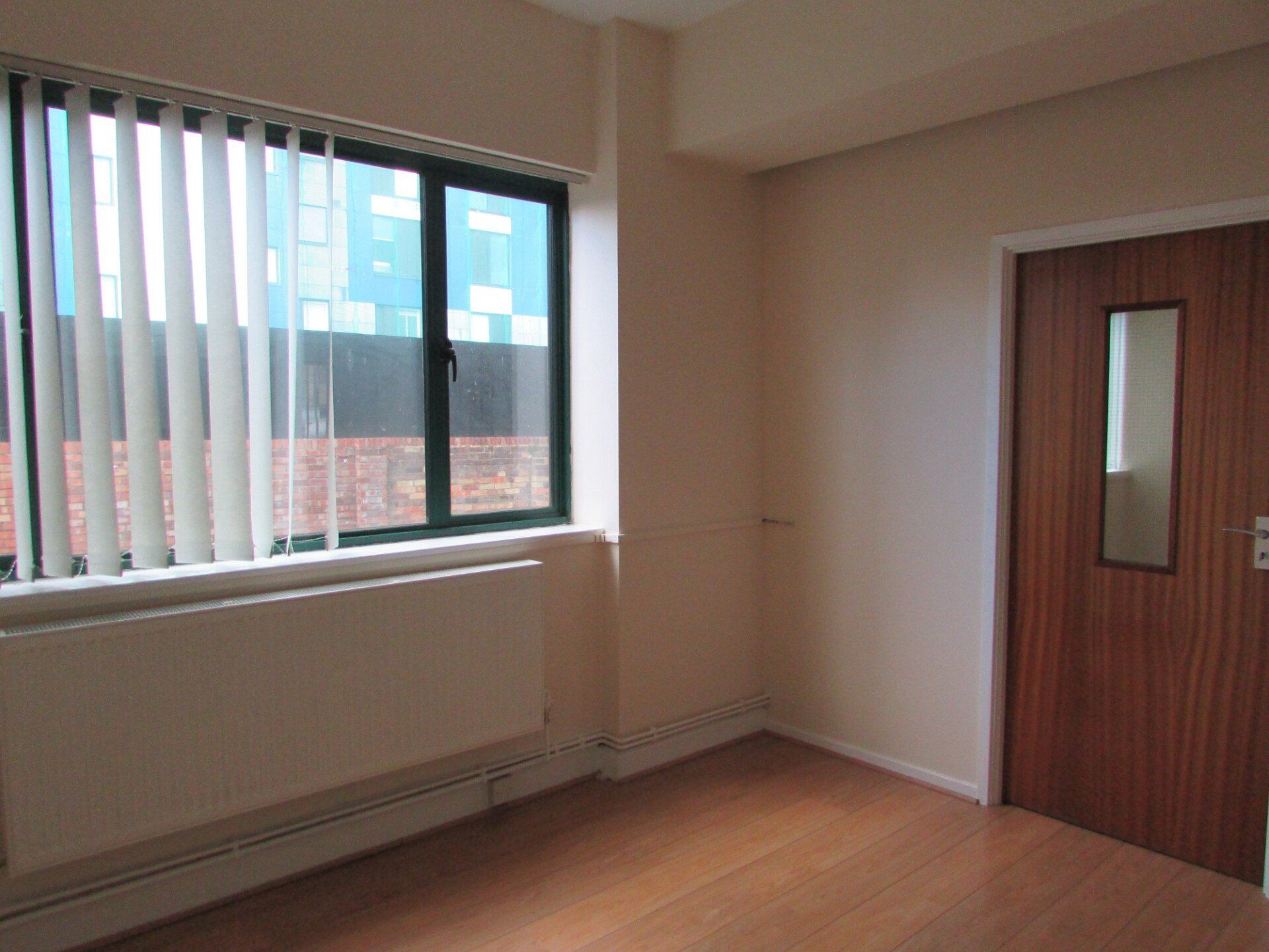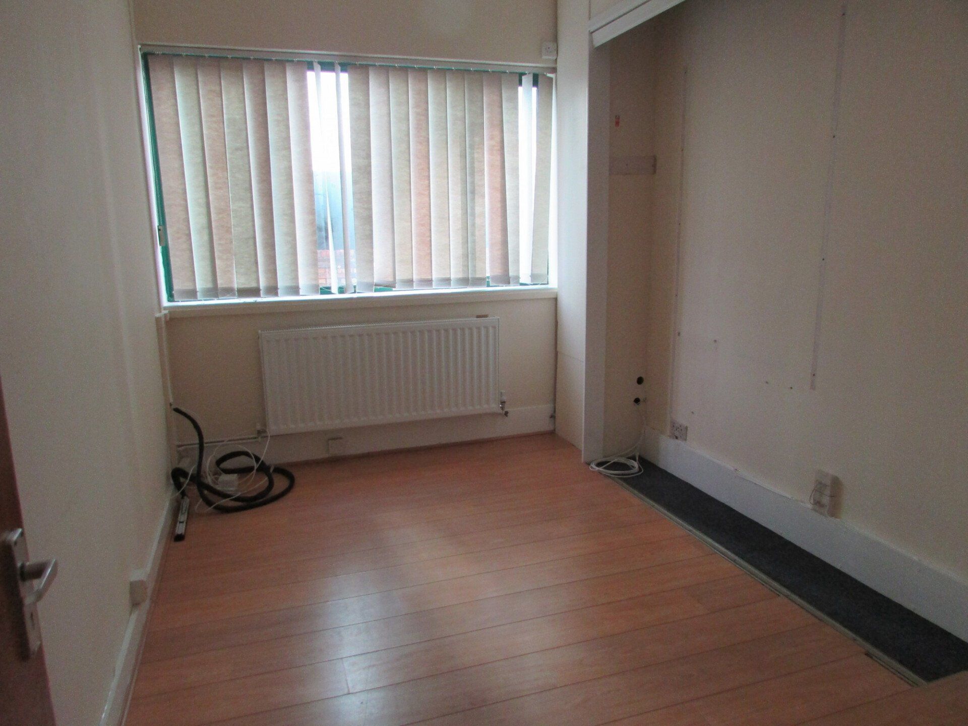 Small office on the right - 1.887m x 3.886m with Window elevation to the front, Radiator, Power and network points.