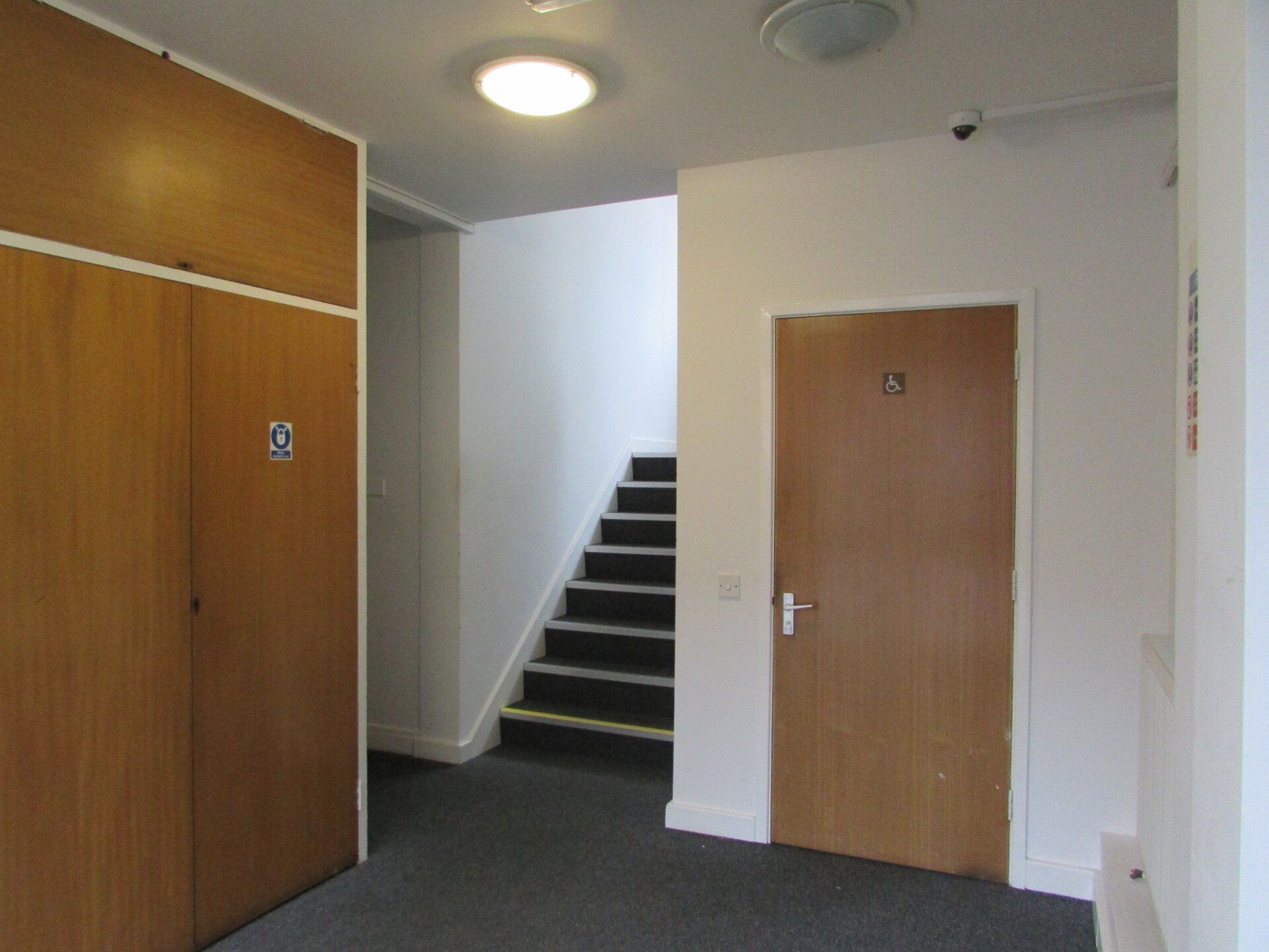 The stairwell has lighting, Radiators, Fire Extinguishers Large windows to the rear elevation.