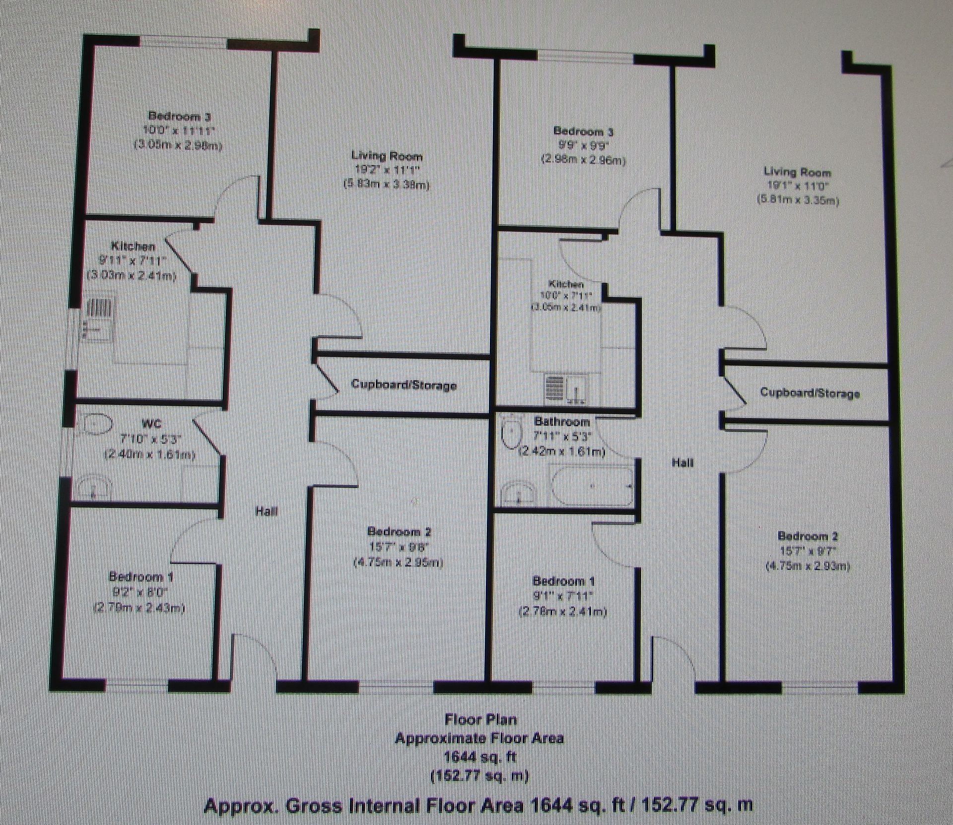 - Total Residential (both flats): Approx. 153 sqm (1,644 sq ft)